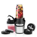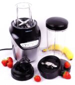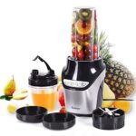 Blenderul mutifunctional Medion MD 17478 de 1000 W dispune de doua recipiente pentru amestecare de 450 ml si 1 l, doua lame si capace pentru ca tu sa iti poti lua cu tine bauturile sanatoase.