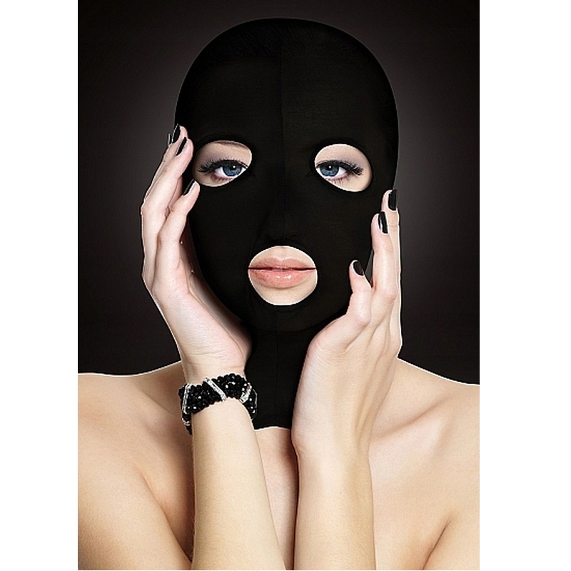 Masca cu gauri pentru gura si ochi este conceputa pentru a fi purtata pe toata fata. Cagula neagră strălucitoare poate fi purtată atât de ea, cât și de el. Țesătura subțire și ușoară vă permite să respirați usor.