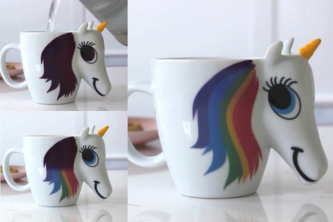 Aceasta cana are un design simpatic cu unicorn, ce isi schimba culoarea in functie de temperatura lichidului.