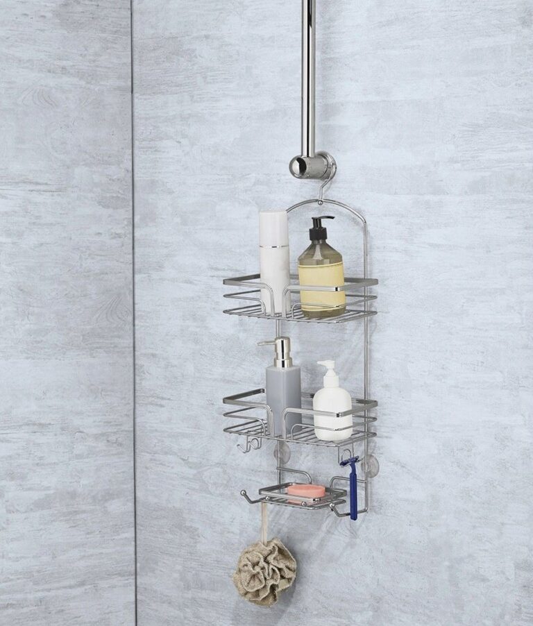 Etajera pentru baie cu 3 nivele si 2 cosuri, 28.5 x 65.5 x 12 cm