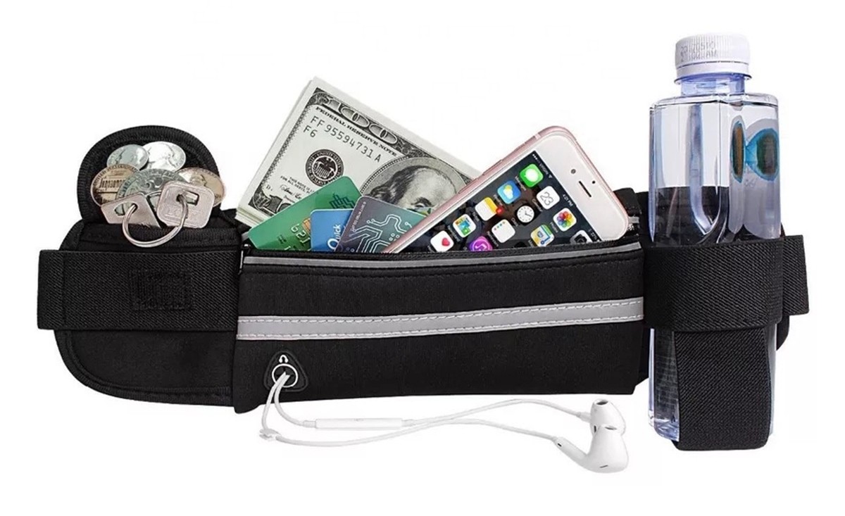 O centură de alergare confortabilă, perfectă, ca o borseta pentru o sticlă de apă și un telefon – creat special pentru persoanele care practică activ sport.