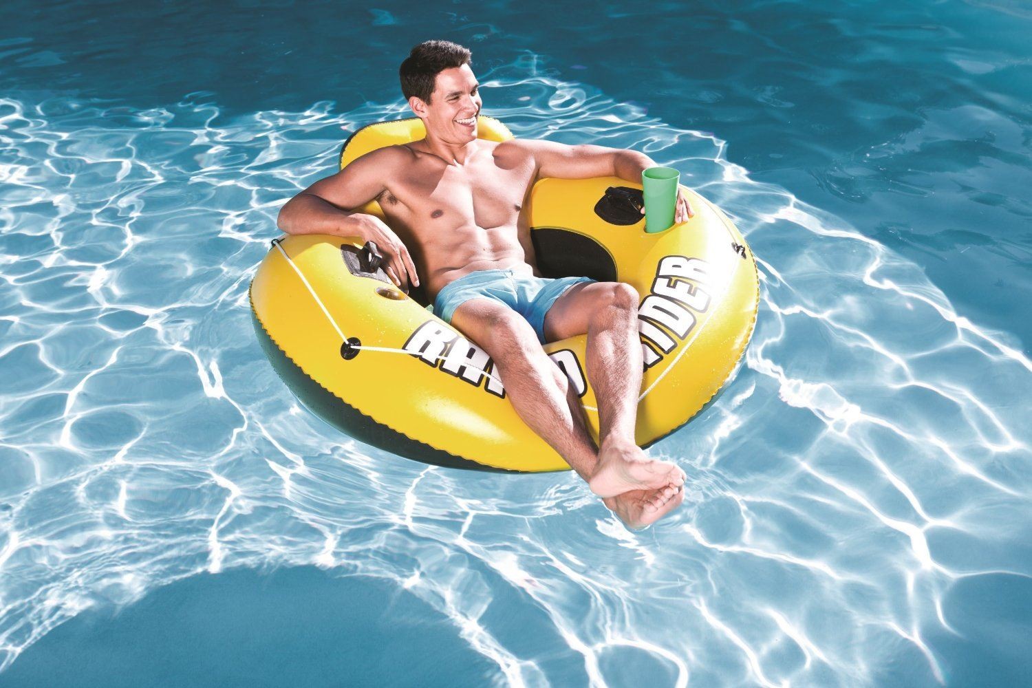 Vizitati piscina sau plaja cu stil cu acest colac confortabil gonflabil.