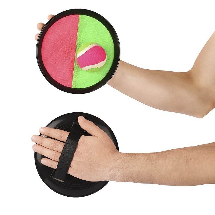 Set 2 palete pentru tenis cu Velcro si minge, verde/roz