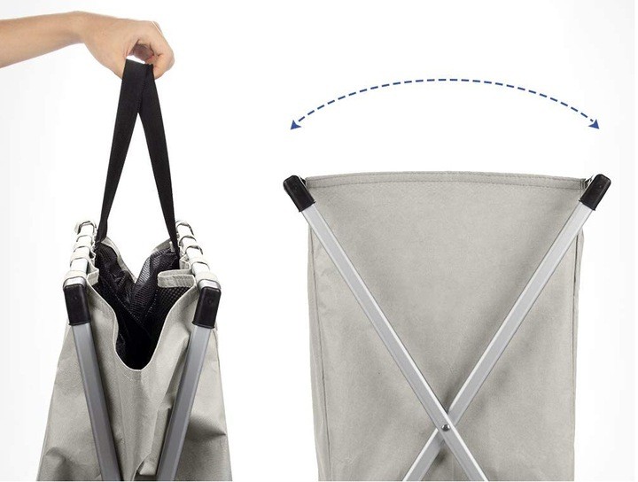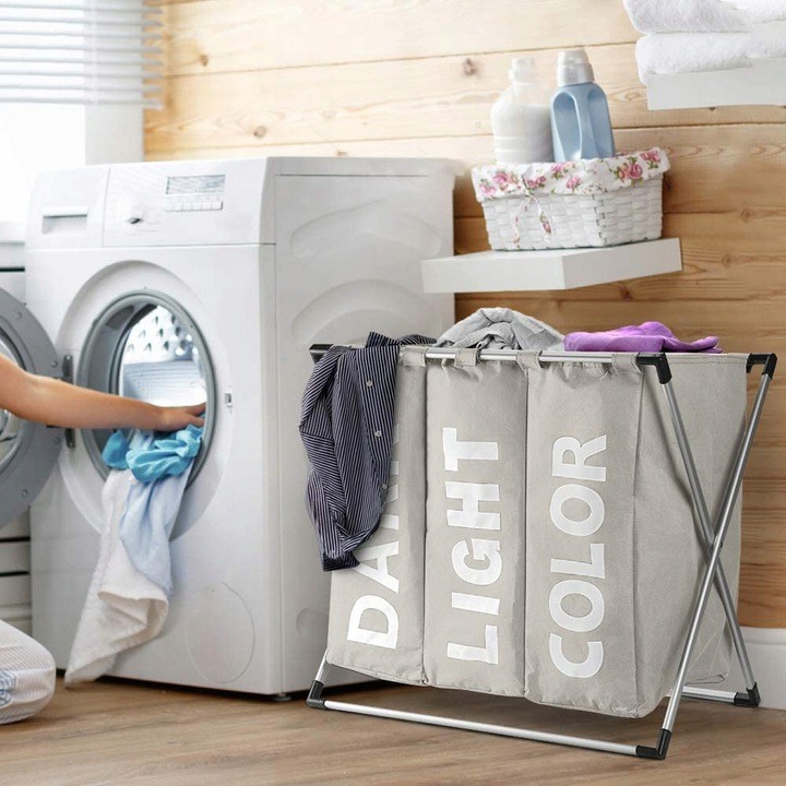 Cos pentru rufe pliabil cu 3 compartimente, potrivit pentru sortarea hainelor.