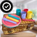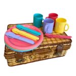 - Accesorii colorate – farfurii, căni și tacâmuri în nuanțe vesele, perfecte pentru un picnic plin de energie.