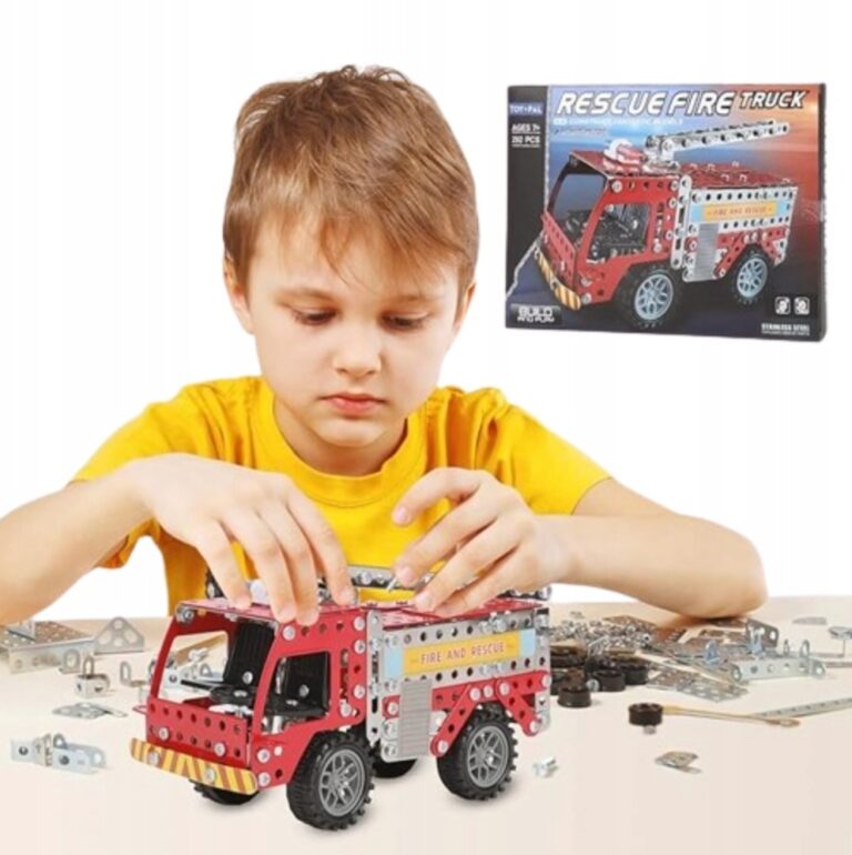 Set de constructie, masina de pompieri, elemente metalice cu surub, 292 bucati, Gonga®