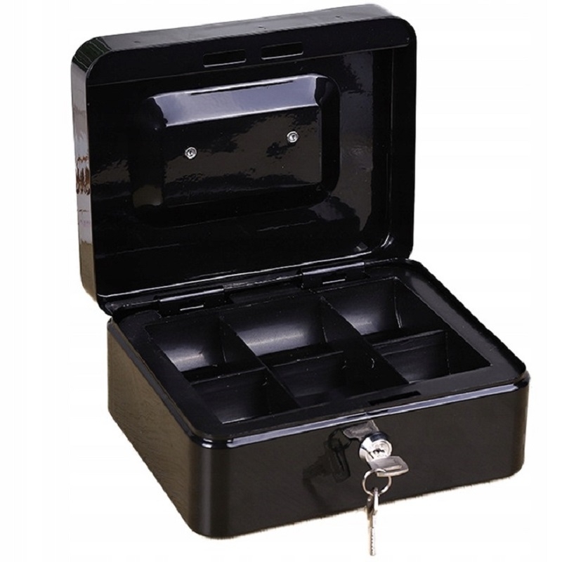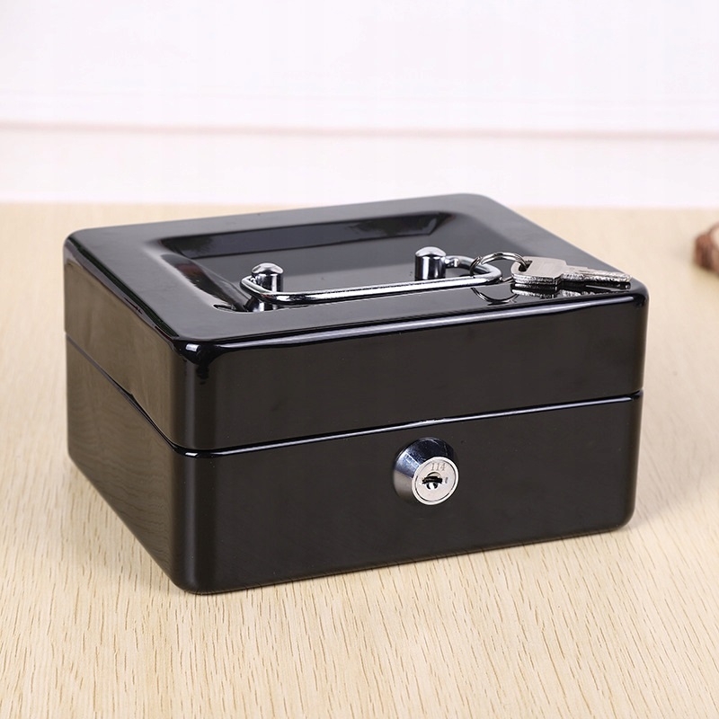 Cutie pentru bani, cu pereți groși și o închidere solidă pentru a proteja obiectele de valoare.