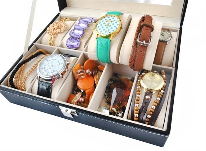 Cutie tip caseta organizatorie pentru ceasuri, ce este o modalitate eleganta de a va depozita ceasurile sau bijuteriile.