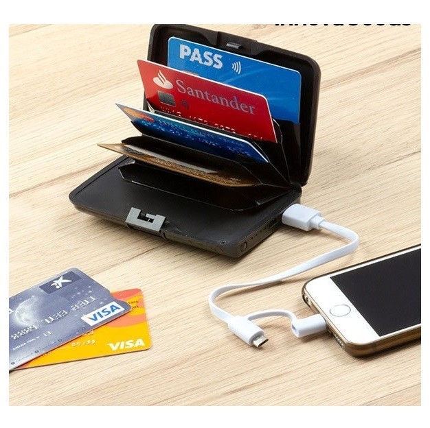Baterie externa cu suport de carduri, 1800 mAh, 5 compartimente pentru carduri, Gonga®