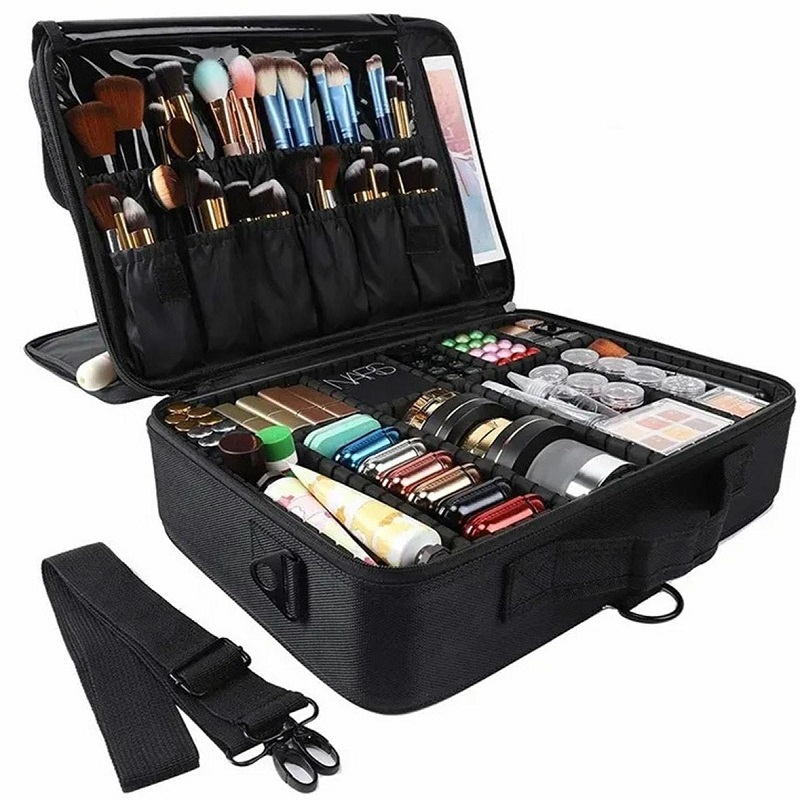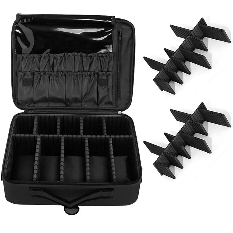 O geanta pentru cosmetice de calatorie extrem de practica. Dotata cu multe compartimente de diferite dimensiuni si scopuri, un avantaj suplimentar este capacitatea de a le rearanja. Buzunarele si compartimentele suplimentare vor facilita depozitarea unei cantitati uriase de produse cosmetice. Carcasa este realizata dintr-un material rigid care protejeaza continutul impotriva deteriorarii accidentale. Husa are fermoar si un maner pentru transport usor.
