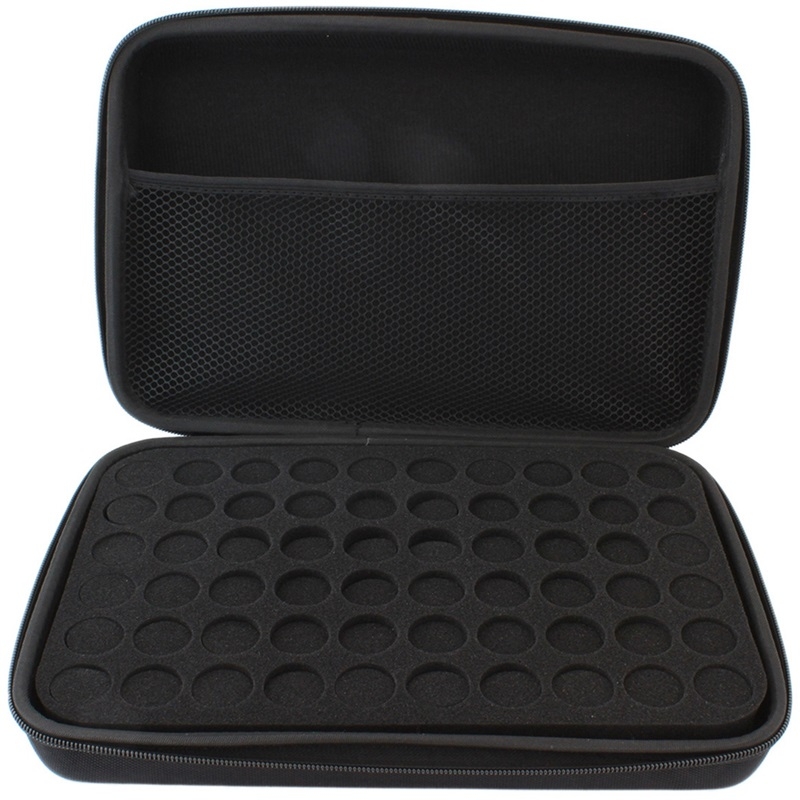 Geanta rigidă, extrem de practică, pentru depozitarea lacurilor de unghii. Un liant din spumă în interiorul carcasei vă permite să deposidati mai multe sticlute de oja în ea. Geanta a fost realizată dintr-un plastic rigid care protejează lacurile împotriva deteriorării accidentale. Husa are fermoar și un mâner pentru transport ușor.