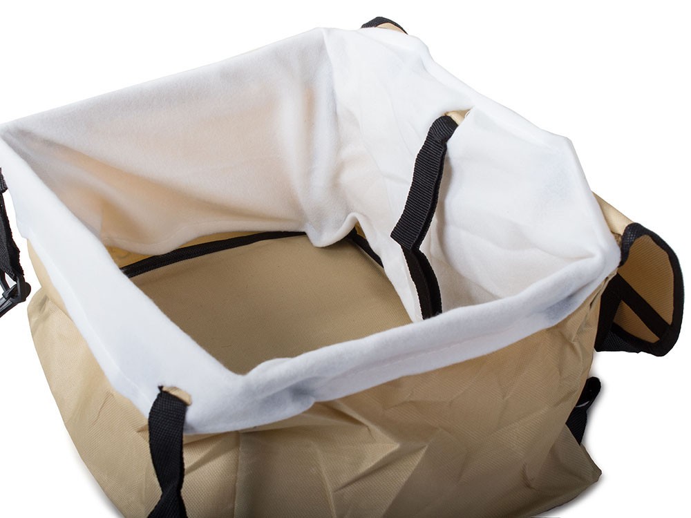 Aceasta geanta este multifunctionala: poate fi folosita ca geanta, ca husa pentru scaunul auto, sau ca spatiu de joaca.