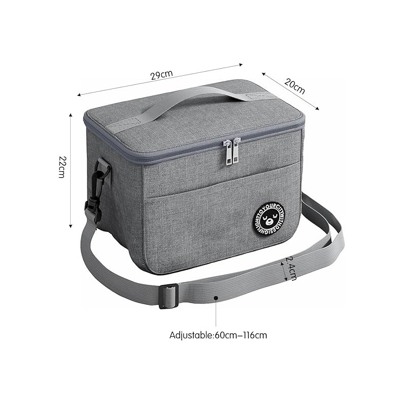 Realizată din materiale izolatoare de calitate, geanta menține alimentele calde sau reci timp îndelungat. Este prevăzută cu închidere cu fermoar, mânere rezistente pentru transport ușor și, opțional, curea reglabilă pentru umăr. Compartimentul principal este ușor de curățat, iar designul compact permite depozitarea fără probleme când nu este folosită.