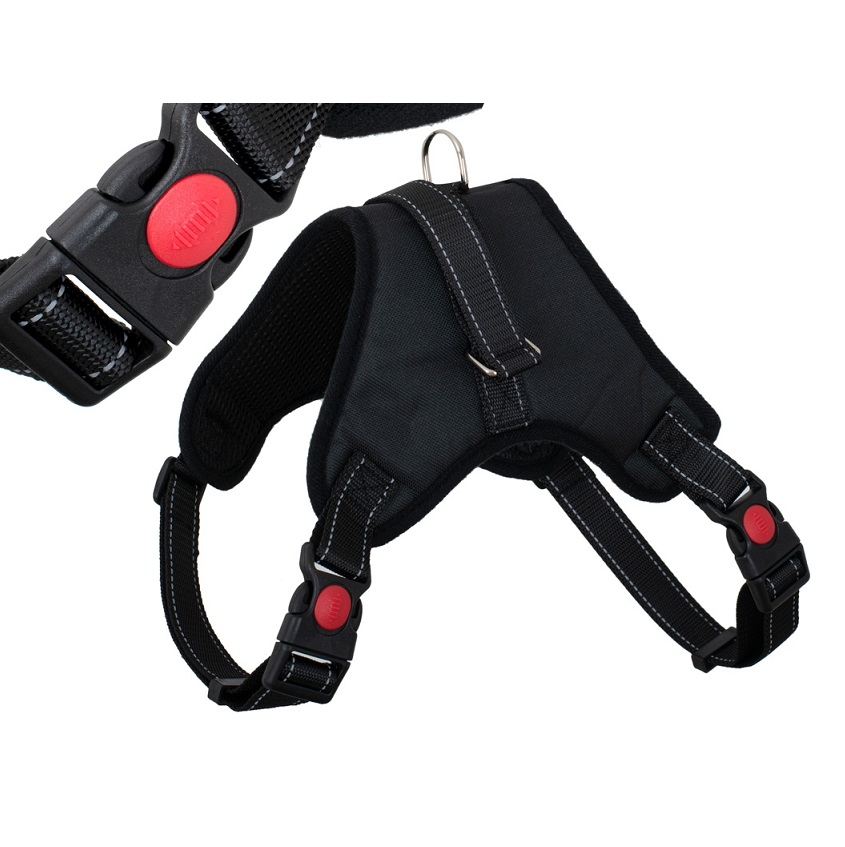 Hamul acoperă o suprafață mare, distribuind uniform presiunea pe pieptul animalului de companie. Acest design previne, de asemenea, tragerea persistentă în timpul plimbărilor.