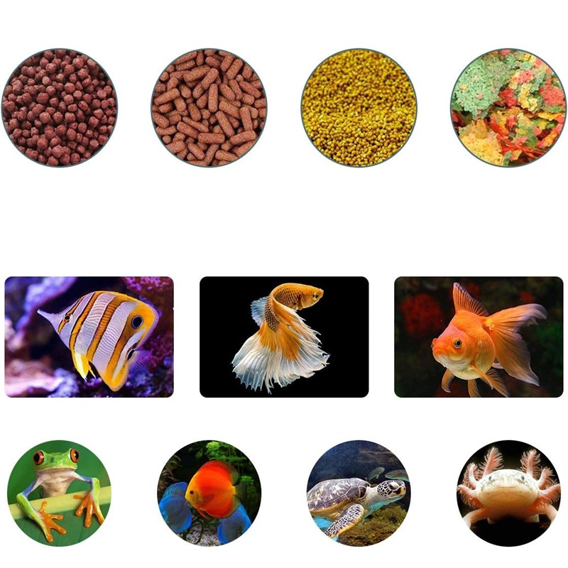 Este perfect atat pentru hrana de tip fulgi, cat si pentru granule.