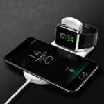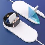 Incarcatorul wireless 2 in 1 este un dispozitiv conceput special pentru a incarca simultan Iphone-ul si ceasul Iwatch, prin intermediul tehnologiei Qi fara fir.
