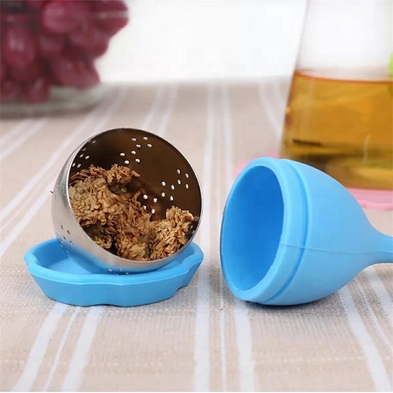 Infuzor din silicon în formă de frunză pentru ierburi și ceai. Echipat cu o sită solidă din oțel. O idee de cadou perfecta pentru orice iubitor de ceai.