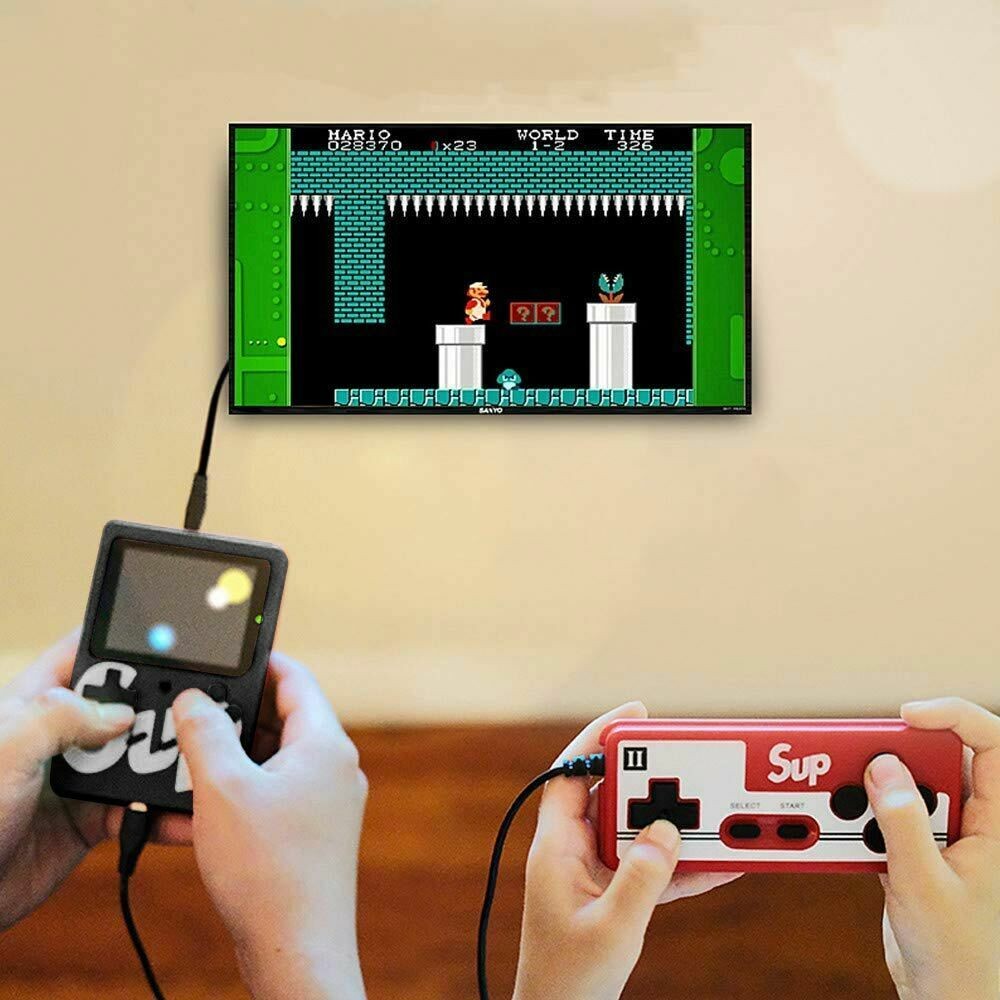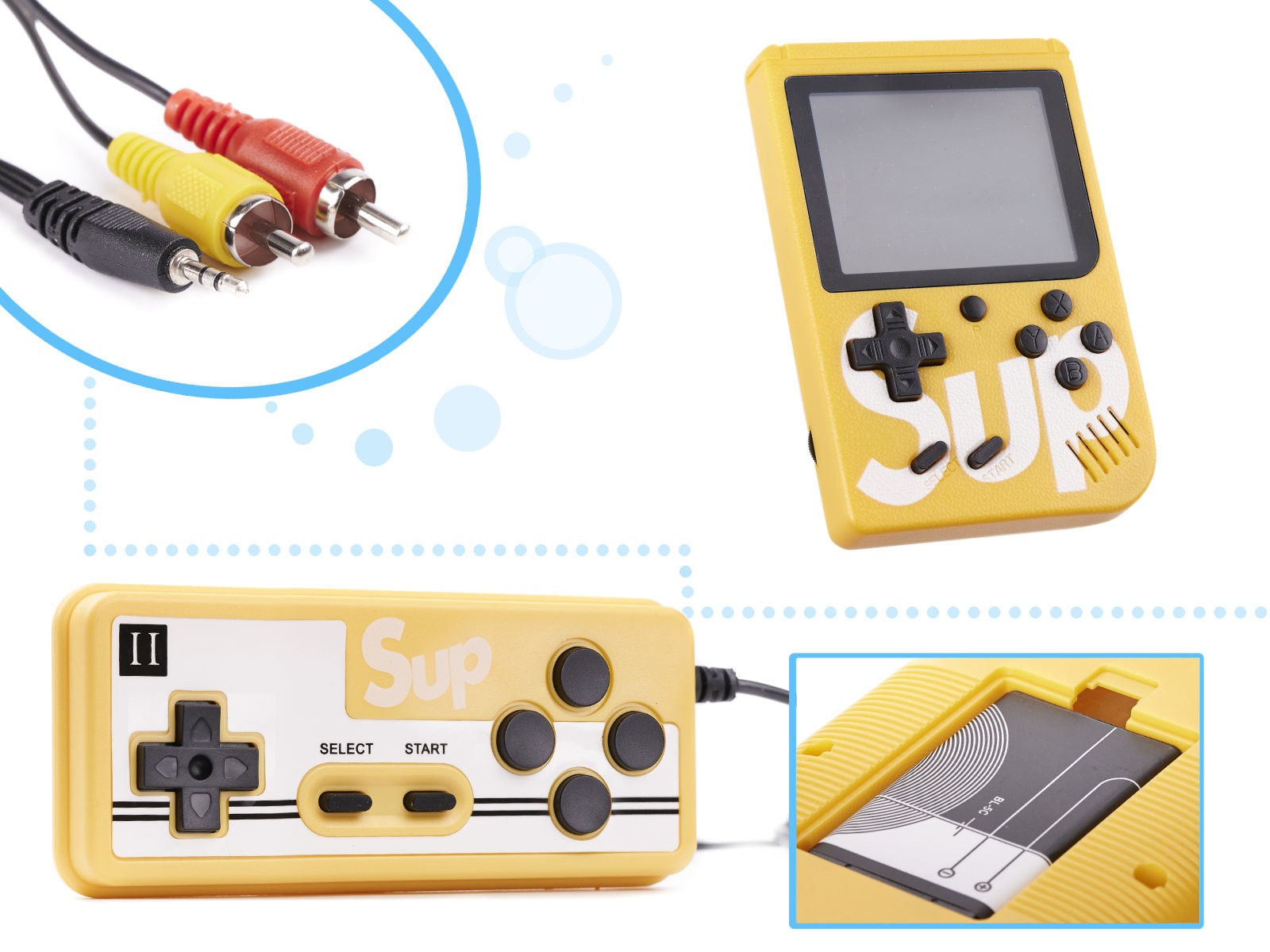 Jocul poate fi conectat si la televizor cu ajutorul cablului AV inclus in pachet.