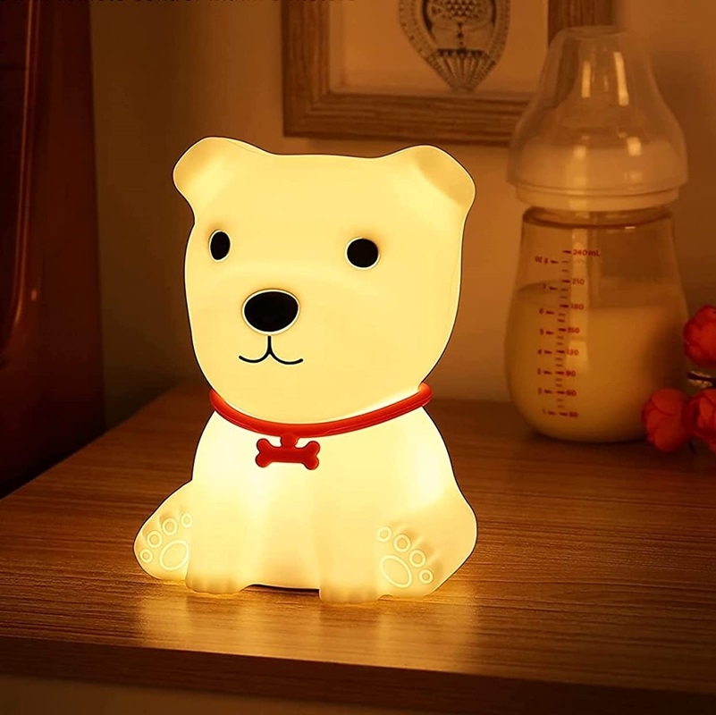 Lampa de veghe pentru copii, model catel din silicon, ce va fi micul prieten al copilului pe timp de noapte.