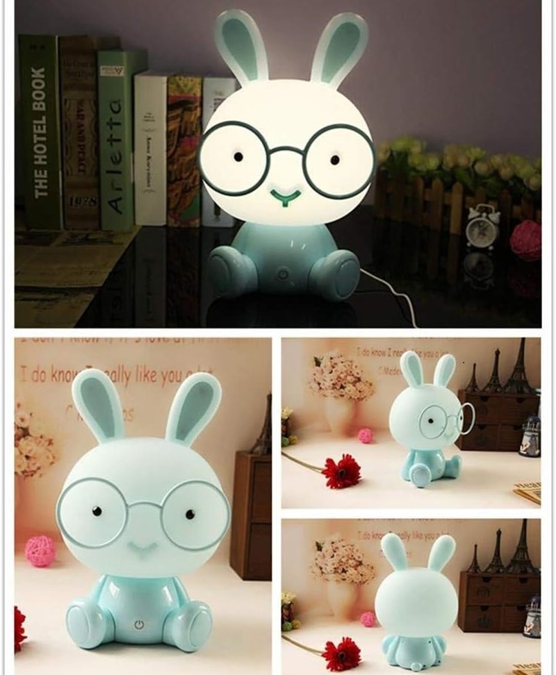 Lampa de veghe pentru copii, iepure albastru, lumina calda este un accesoriu necesar pentru orice camera pentru copii, ce va incanta cu siguranta orice copil mic.