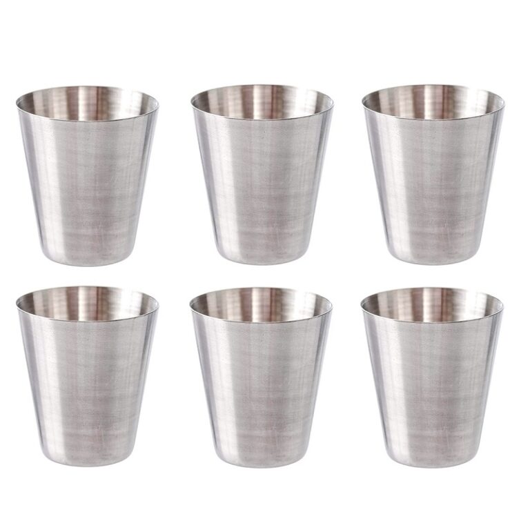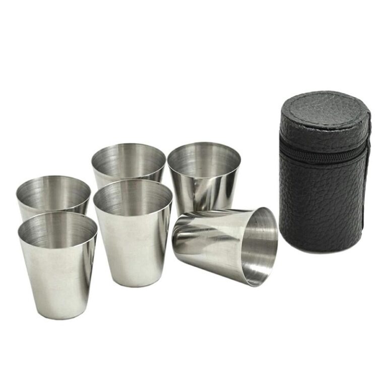 Set de 6 pahare de 30 ml, otel inoxidabil cu husa din piele ecologica, Gonga®