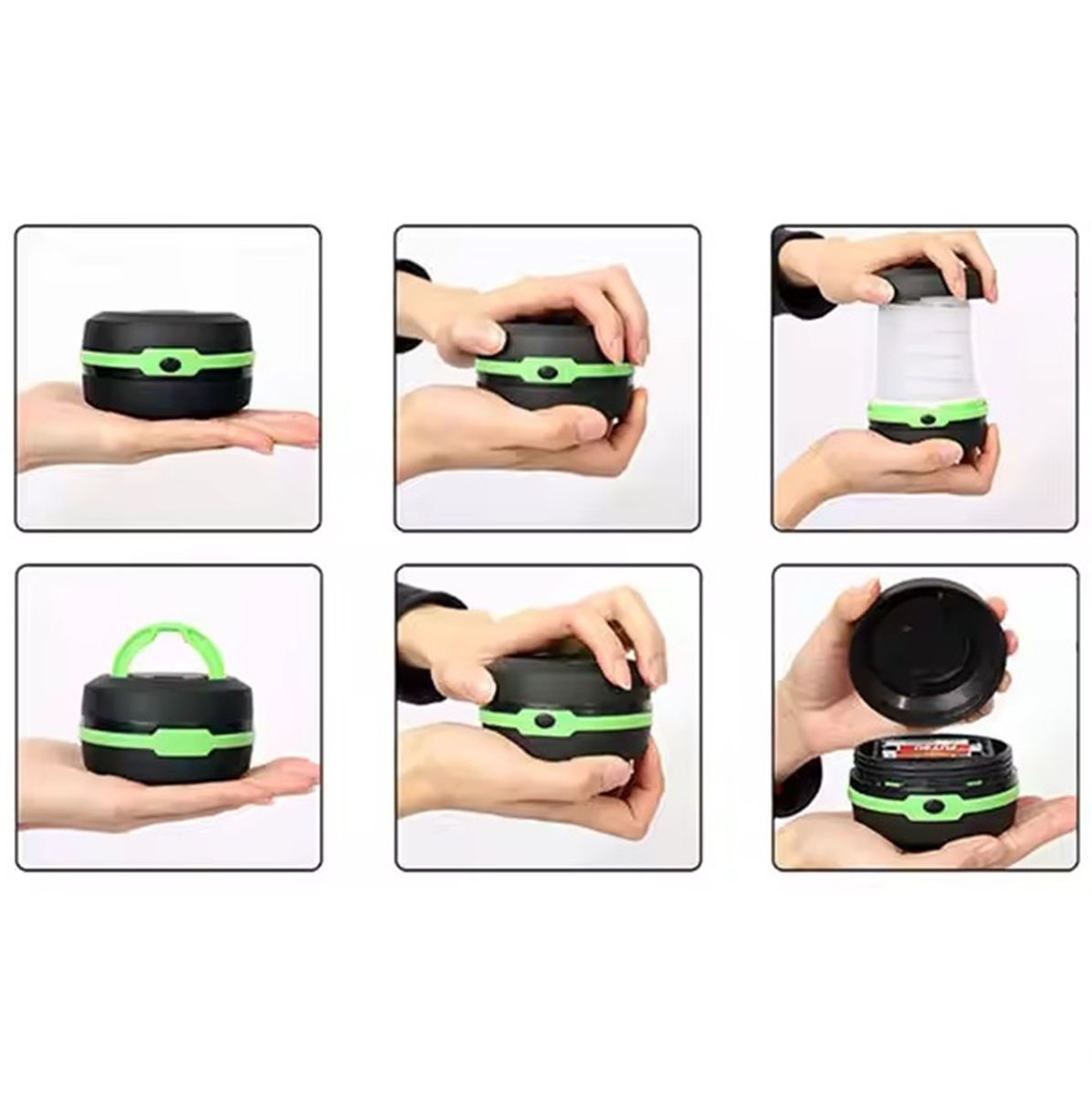 Lampa LED de camping este o soluție excelentă pentru a ilumina spațiile fără acces la o sursă de curent electric. Funcționează pe baza a 3 baterii AA, oferind o lumină puternică, economisitoare de energie, fără cabluri. Datorită suportului încorporat, aceasta poate fi agățată cu ușurință în cort sau în alte locații, iar designul pliabil o face ușor de transportat și depozitat.