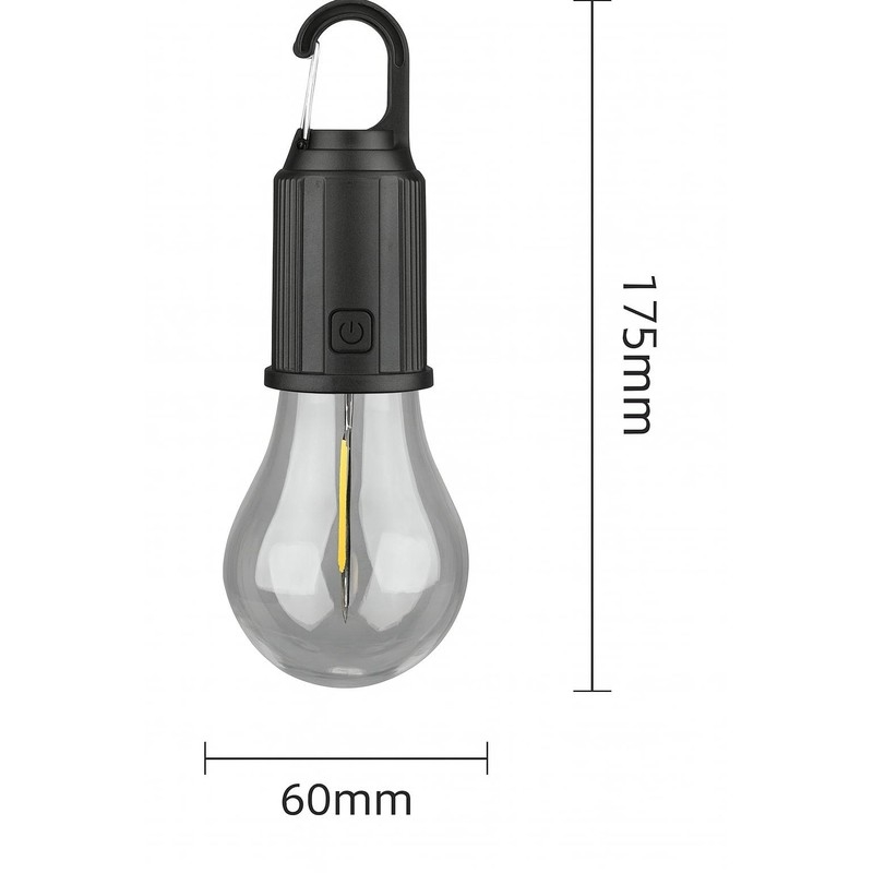 Lampă LED portabilă pentru camping, în formă de bec cu cârlig, ideală pentru drumeții, camping, cort, rulotă sau foișor. Ușoară, compactă și rezistentă la apă, oferă o sursă de lumină practică în orice condiții. Este echipată cu acumulator reîncărcabil prin USB-C și dispune de reglaj al intensității luminii în 3 trepte, pentru adaptarea iluminării în funcție de necesități.