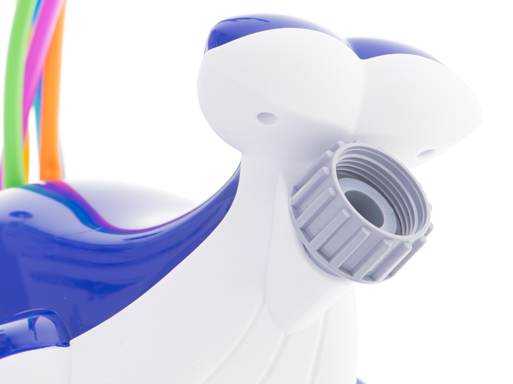 Pe spatele aspersoarei în formă de balenă se află furtunuri colorate din care, atunci când conectați furtunul de grădină, va începe să stropească apă drăguță și rece!