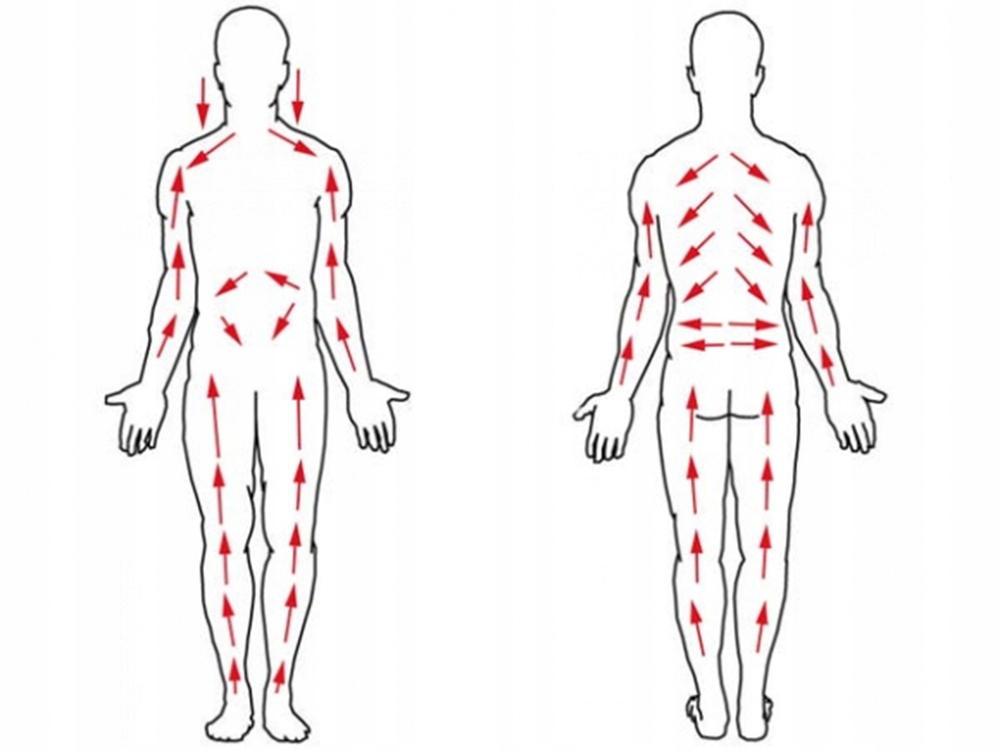 Toate mișcările de masaj ar trebui să fie efectuate în direcția inimii și repetate de mai multe ori pe fiecare zonă.