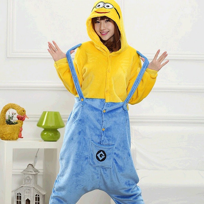 Pijama intreaga model Minions unisex, perfect pentru zilele petrecute in casa.