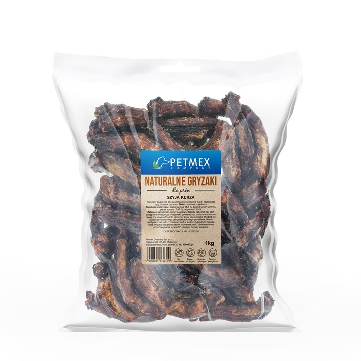 Recompense pentru caini gaturi de pui uscat natural, 1 kg, Petmex