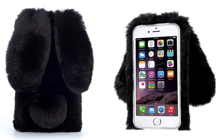 Husa cu blanita iepuras, pentru iPhone, negru