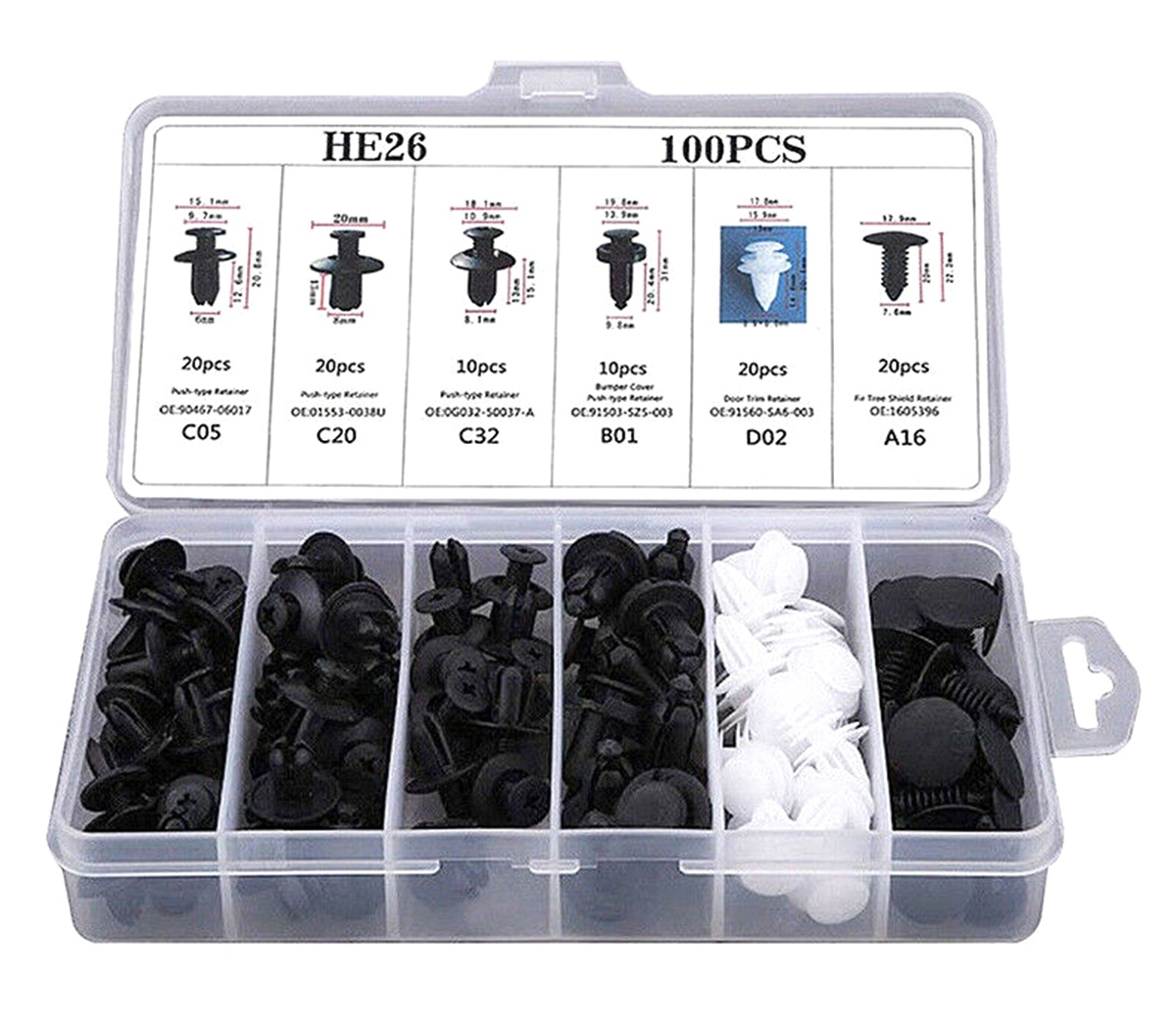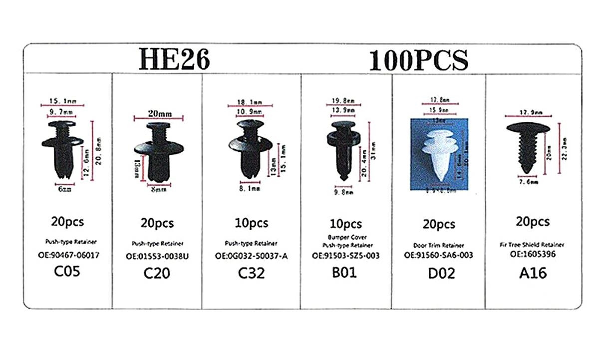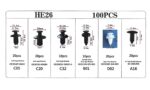 Un set practic de 100 de cleme/ace auto, ideal pentru înlocuirea rapidă a elementelor de prindere din diverse zone ale mașinii. Setul conține șase dintre cele mai utilizate tipuri de cleme, grupate în pachete de 10 și 20 de bucăți. Carcasa compactă, prevăzută cu compartimente separate și etichete clare, împiedică amestecarea pieselor și permite identificarea rapidă a fiecărui tip de clemă.