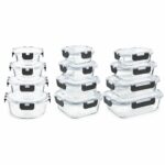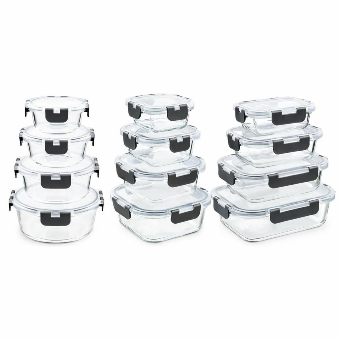 Set 12 caserole din sticla cu inchidere etansa, dreptunghiulare si rotunde, Gonga®