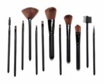 Un set de 12 perii din peri sintetici, cu un maner asemanator lemnului de inalta calitate, inglobat intr-un capac argintiu.