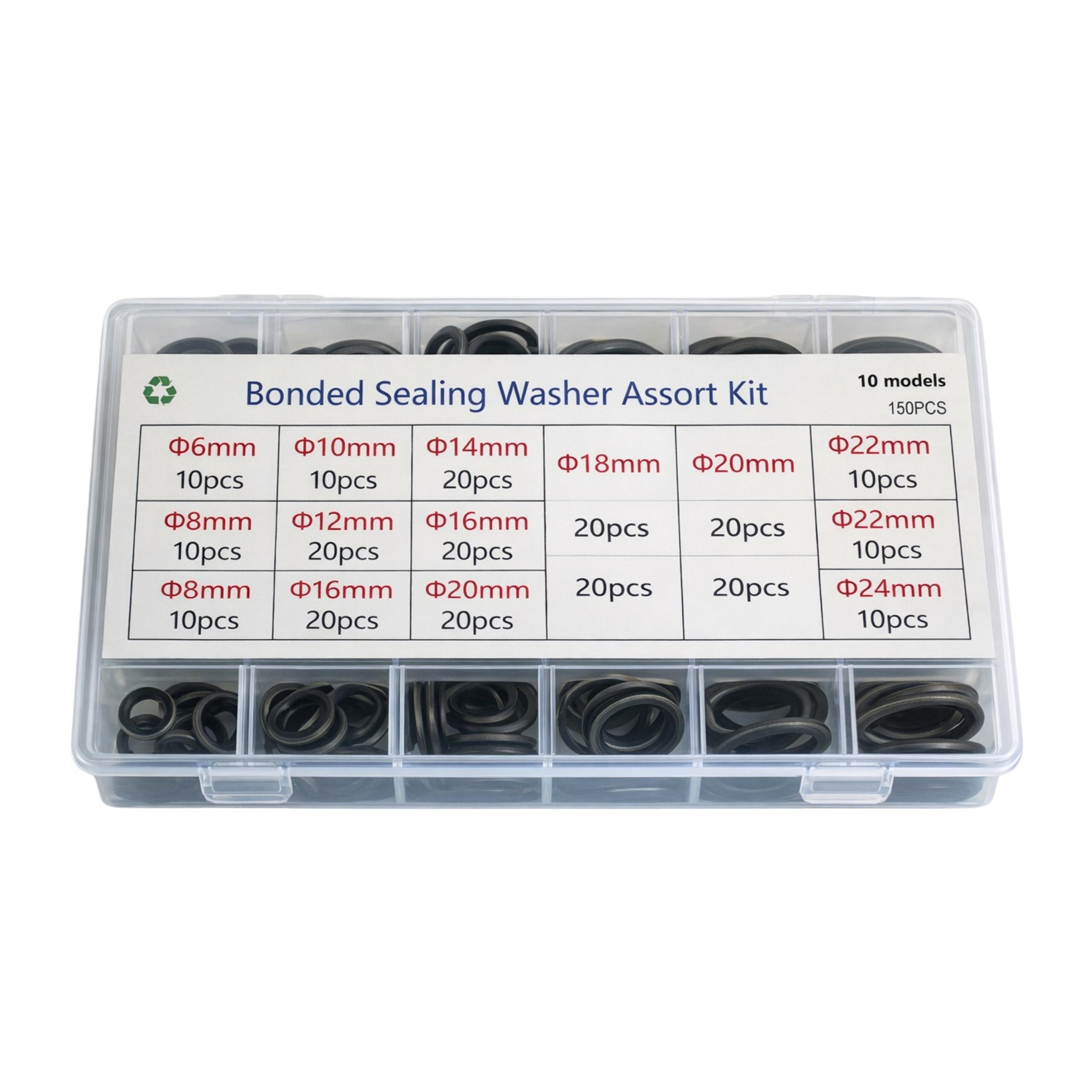Acest set de inele de etanșare este o soluție practică pentru etanșarea conexiunilor filettate și flanșe. Fiecare inel dispune de o margine de cauciuc integrată, oferind un efect dublu de etanșare. Acest design previne eficient scurgerile și este rezistent la combustibil și ulei.