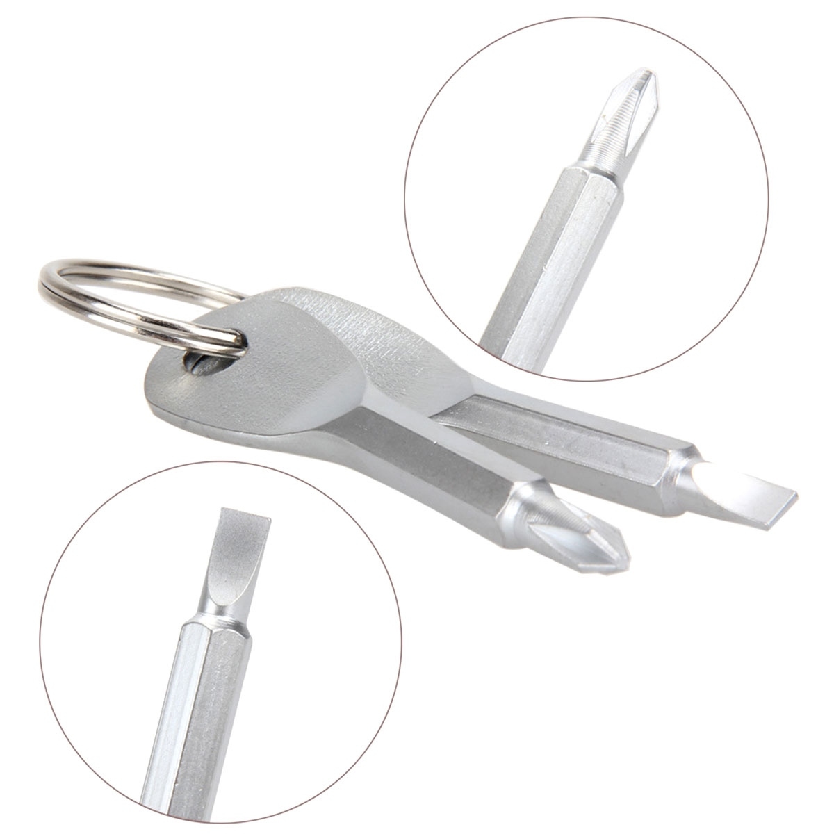 Un inel de chei funcțional sub formă de două chei. Fiecare dintre ele este o șurubelniță funcțională (plată și cruce). Poate fi atașat convenabil la o curea sau la alte chei (inel inclus în set).
