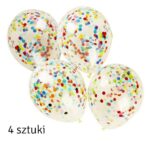 Un set de 4 bucăți de baloane din latex în culori strălucitoare, transparente. Baloanele au fost umplute cu confetti multicolore. Sunt perfecte pentru nunți și alte evenimente speciale – nu numai cu participarea copiilor!