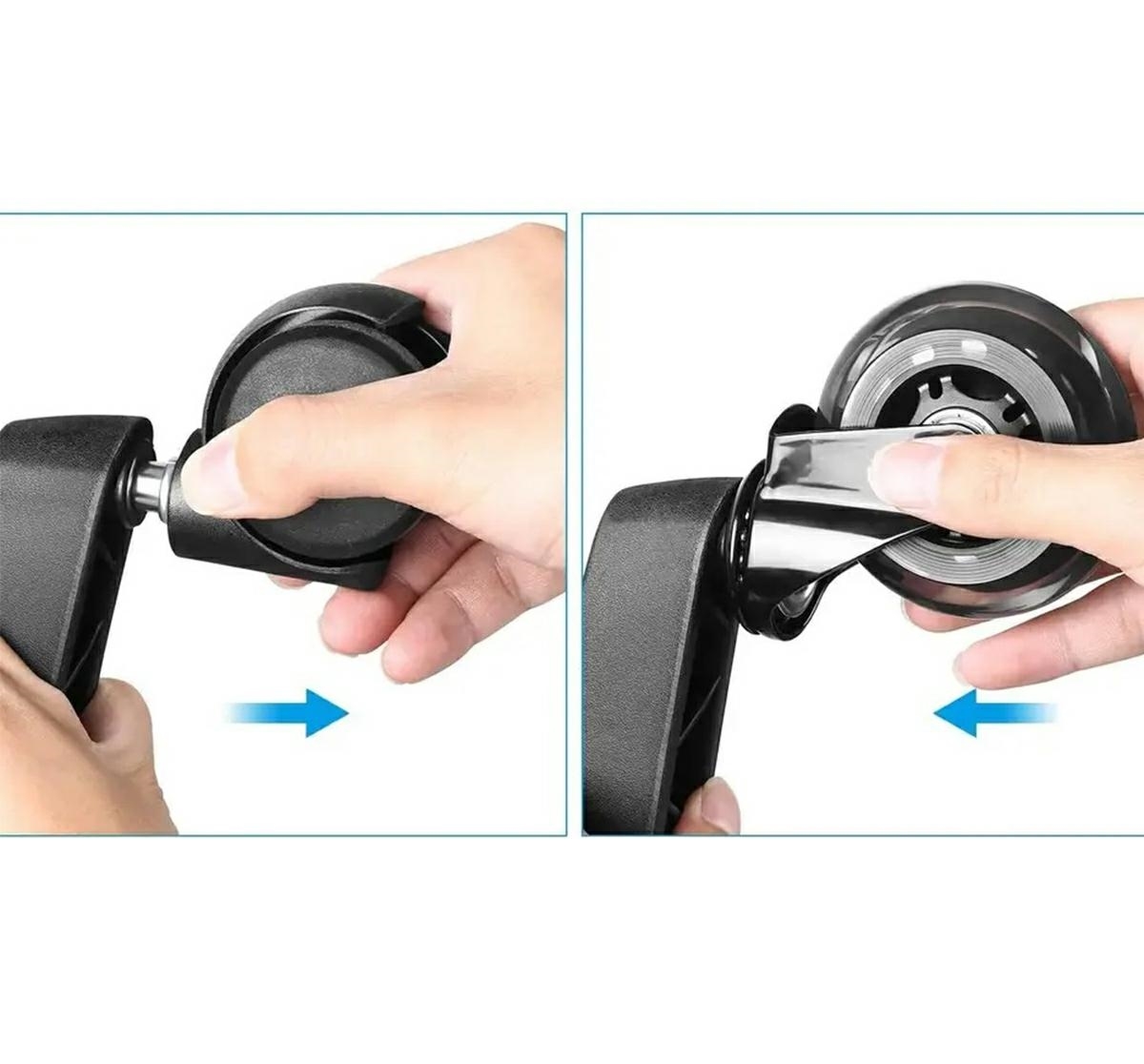 Acest set de cinci roți pivotante oferă o mișcare lină și fără frecare datorită rulmenților rezistenți. Instalarea este rapidă și simplă – știfturile se apasă direct în orificiile din baza scaunului. Suprafețele roților sunt acoperite cu cauciuc dur și neted, protejând podeaua de zgârieturi.