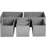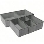 Set de 6 organizatoare pentru sertar. Inserțiile permit o organizare simplă, practică și economică a colecțiilor tale de cravate, șosete, curele și lenjerie. Setul include trei organizatoare de dimensiuni diferite, cu un număr variat de compartimente și utilizări. Acestea sunt realizate dintr-un material solid, respirabil. Designul deschis permite acces rapid la haine. Posibilitatea de pliere oferă un plus de economisire a spațiului atunci când nu folosești unul dintre inserții.