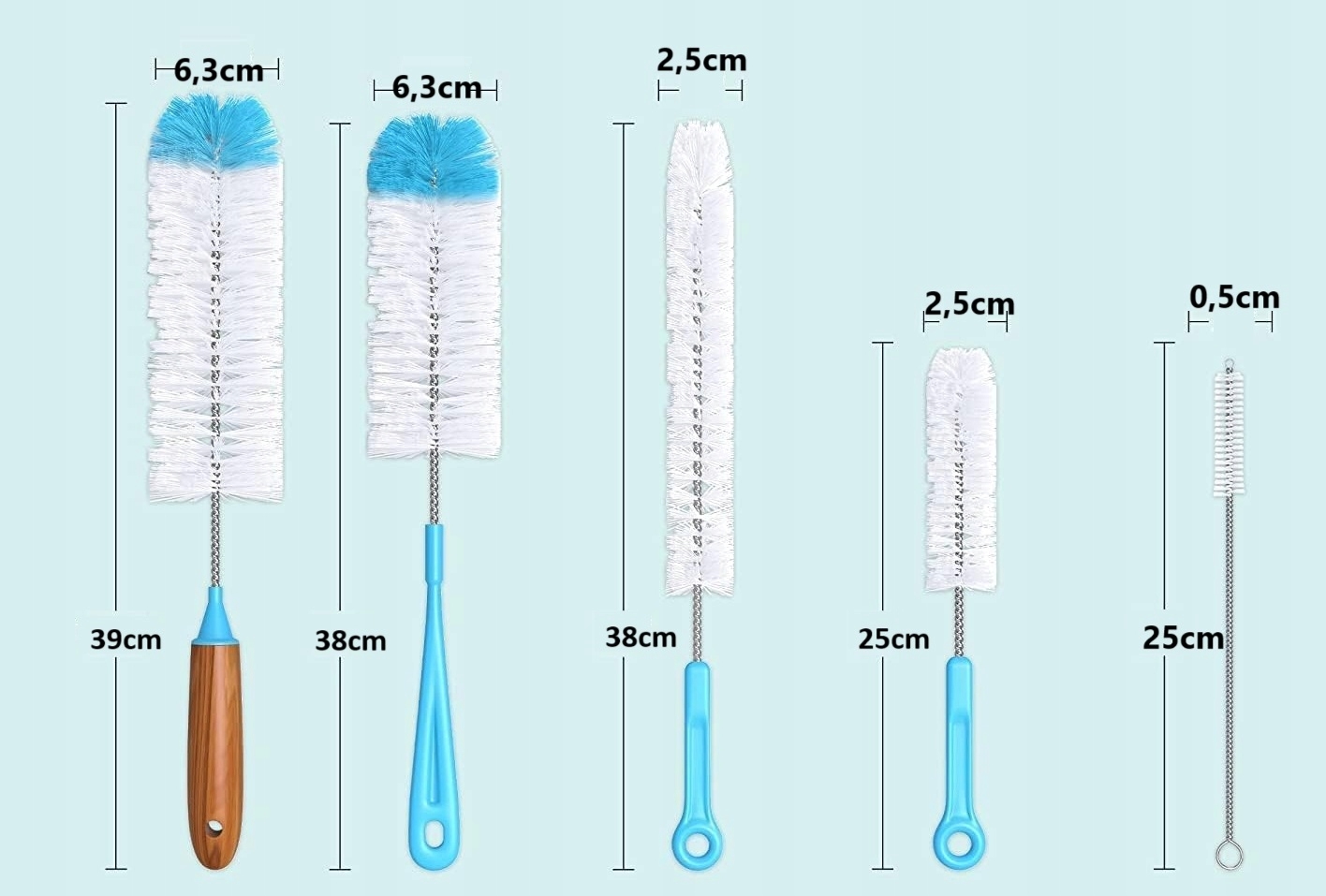 Acest set de 7 perii este soluția ideală pentru curățarea eficientă și delicată a sticlelor de carbonator, paielor și altor recipiente care necesită o îngrijire specială. Proiectate pentru a îndepărta chiar și cele mai persistente reziduuri, periile sunt suficient de blânde pentru a proteja suprafața sticlelor din plastic, fără a le zgâria.