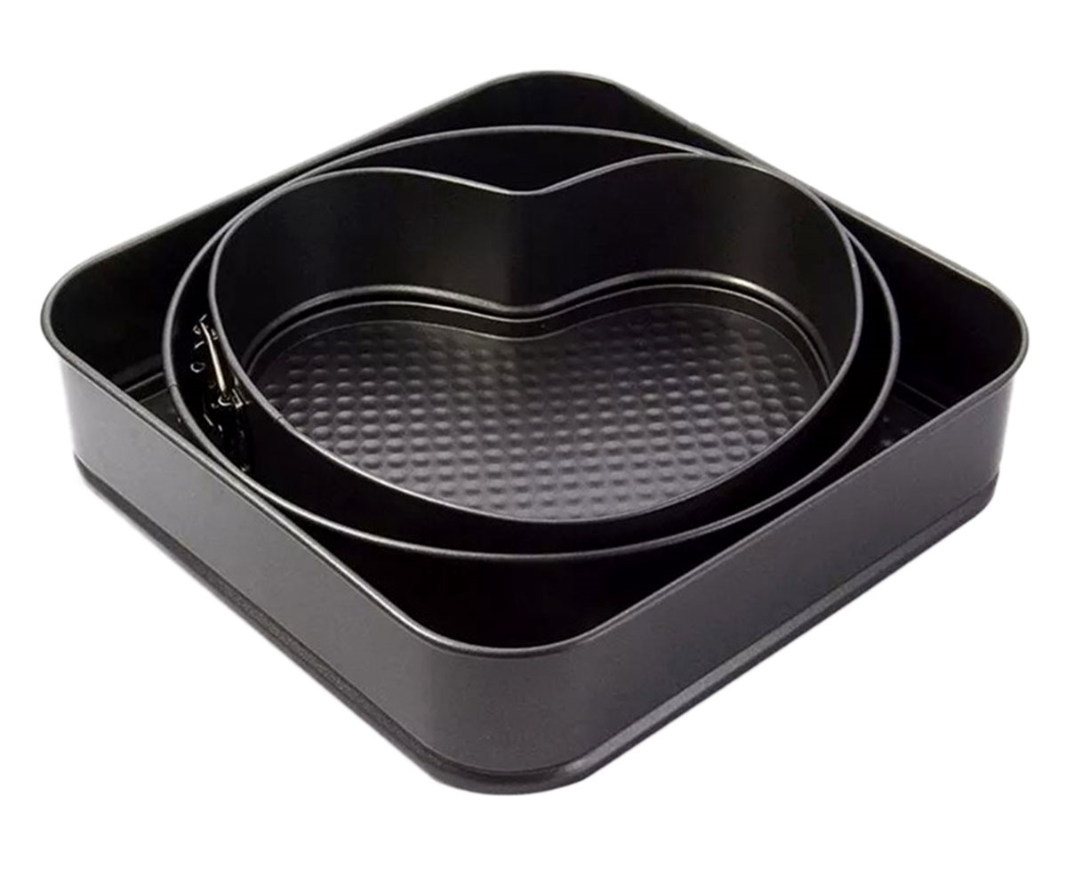 Set de 3 forme pentru copt, baza detasabila, inima, forma rotunda si patrata, Gonga®