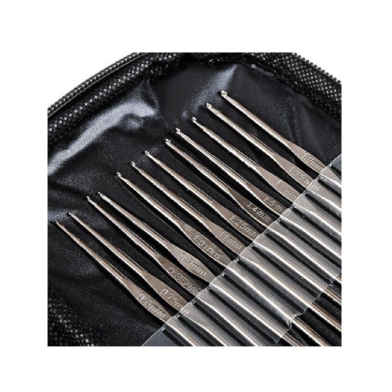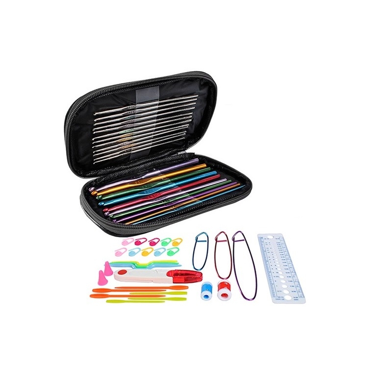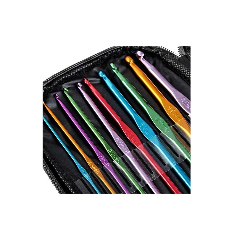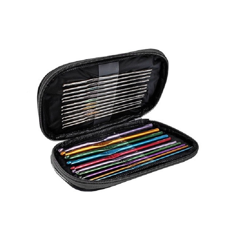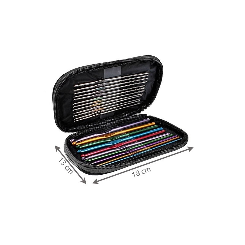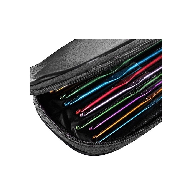 Toate croșetele sunt fabricate din aluminiu solid și se potrivesc perfect în mână, făcându-le potrivite și pentru profesioniști. Vine cu o husă practică cu fermoar.