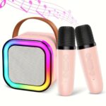 Acest sistem karaoke portabil este alegerea ideală pentru petreceri acasă, activități pentru copii, întâlniri cu prietenii sau vacanțe. Setul include o boxă Bluetooth cu iluminare LED RGB și două microfoane wireless cu efect Magic Voice. Dispozitivul acceptă multiple surse audio – Bluetooth 5.0, USB, microSD, AUX 3,5 mm și MP3. Datorită bateriei integrate și designului compact, îl poți lua cu ușurință oriunde.