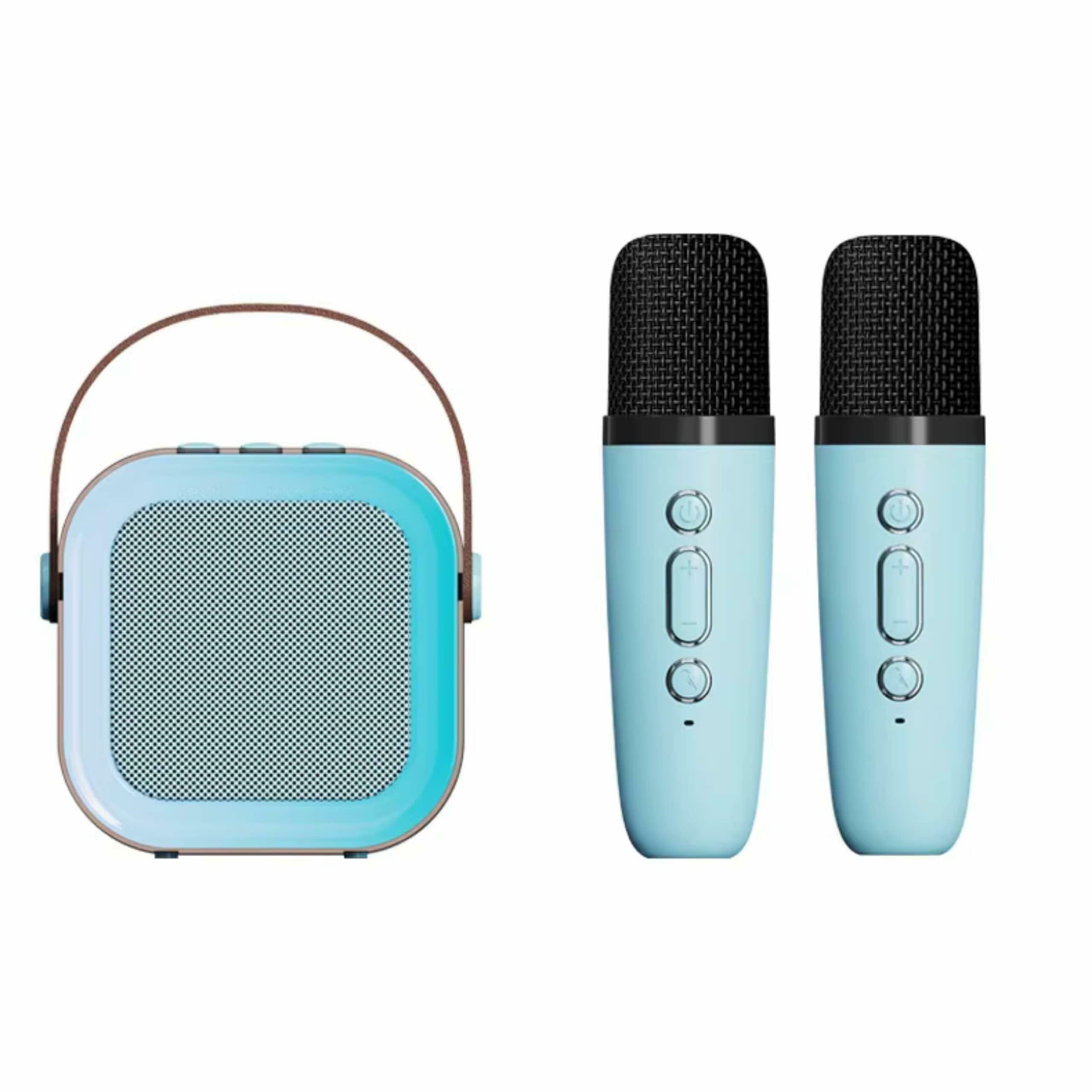 Acest sistem karaoke portabil este alegerea ideală pentru petreceri acasă, activități pentru copii, întâlniri cu prietenii sau vacanțe. Setul include o boxă Bluetooth cu iluminare LED RGB și două microfoane wireless cu efect Magic Voice. Dispozitivul acceptă multiple surse audio – Bluetooth 5.0, USB, microSD, AUX 3,5 mm și MP3. Datorită bateriei integrate și designului compact, îl poți lua cu ușurință oriunde.