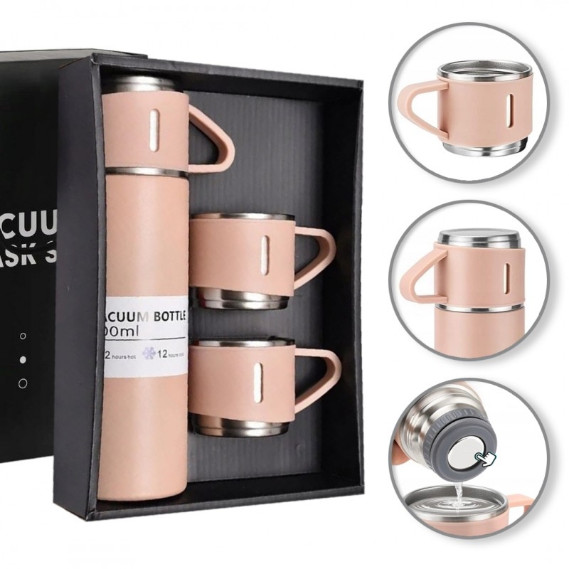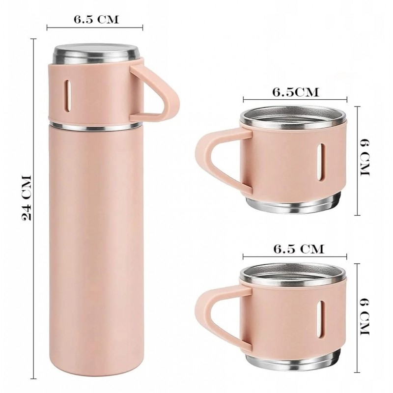 Set termos cu 3 căni din oțel inoxidabil, 0.5L, menținere a băuturilor calde 6 ore și reci 12 ore