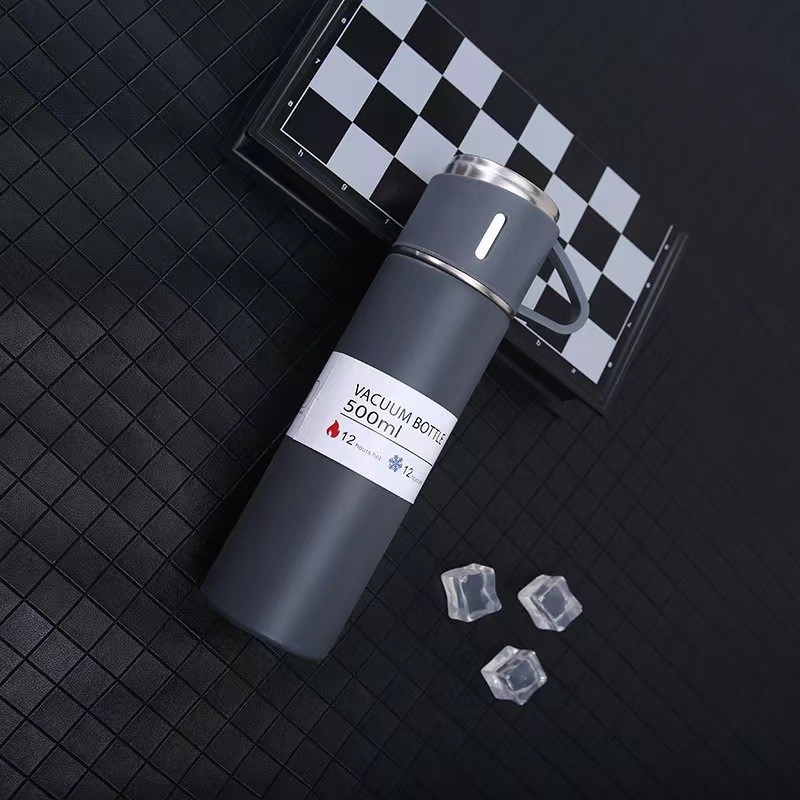 Set termos cu 3 căni din oțel inoxidabil, 0.5L, menținere a băuturilor calde 6 ore și reci 12 ore, Gonga®