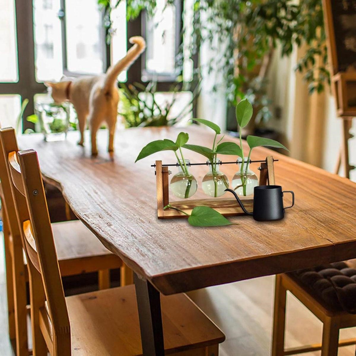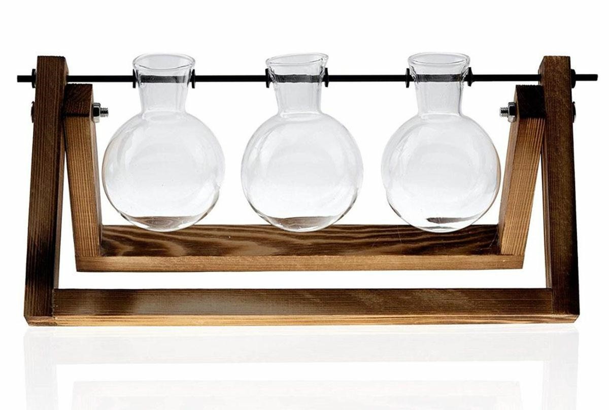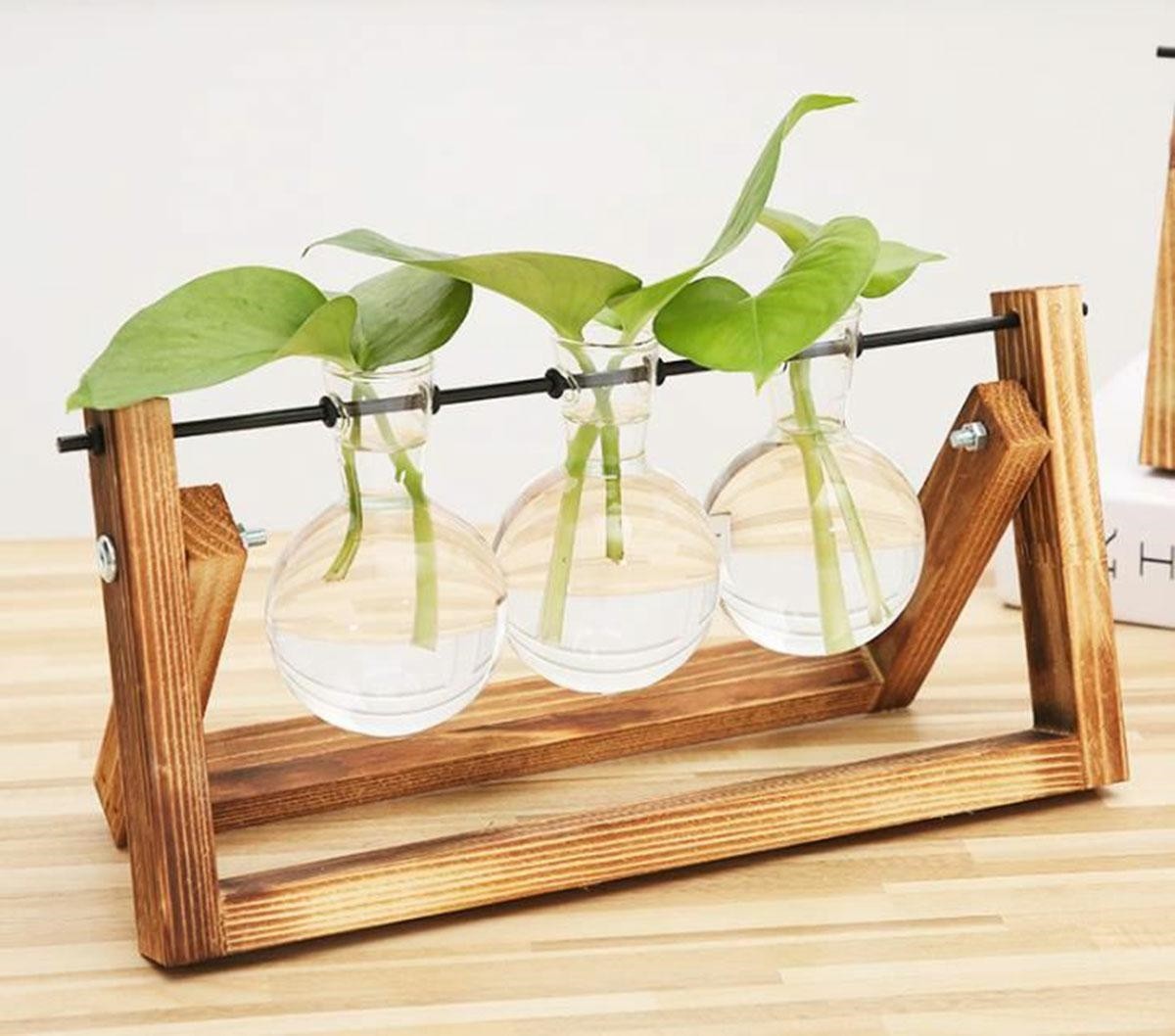 Are un suport estetic din lemn. Va fi perfect ca decor interior, arătând întregul sistem radicular al plantelor.