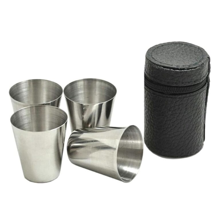 Set 4 Pahare de 30 ml, Otel Inoxidabil Cu Husa Din Piele Ecologica, Gonga®